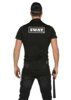 Zwart SWAT-shirt makkelijk te dragen op een spijkerbroek.
