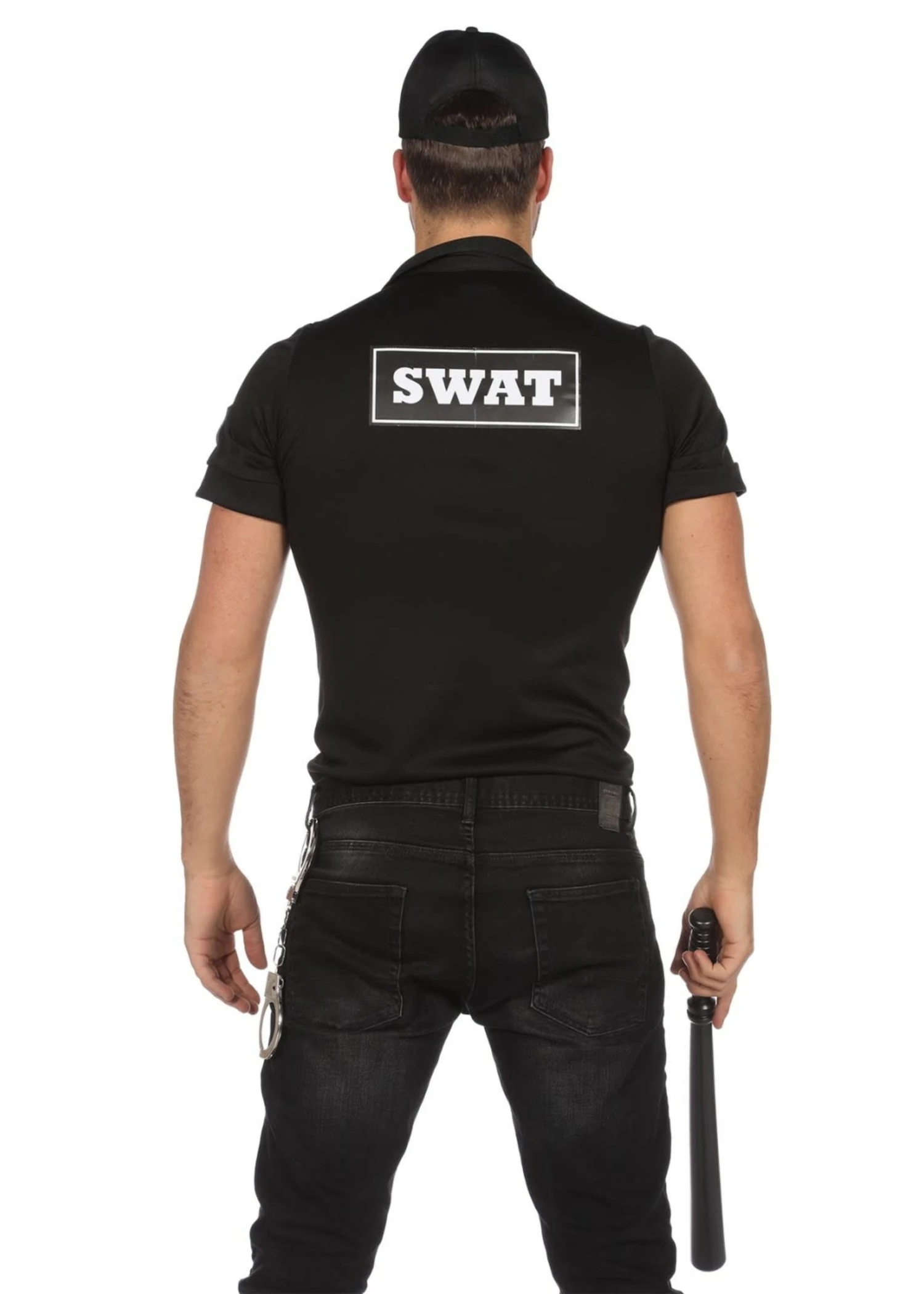 Maak dit outfit compleet met bijpassende accessoires zoals handboeien.